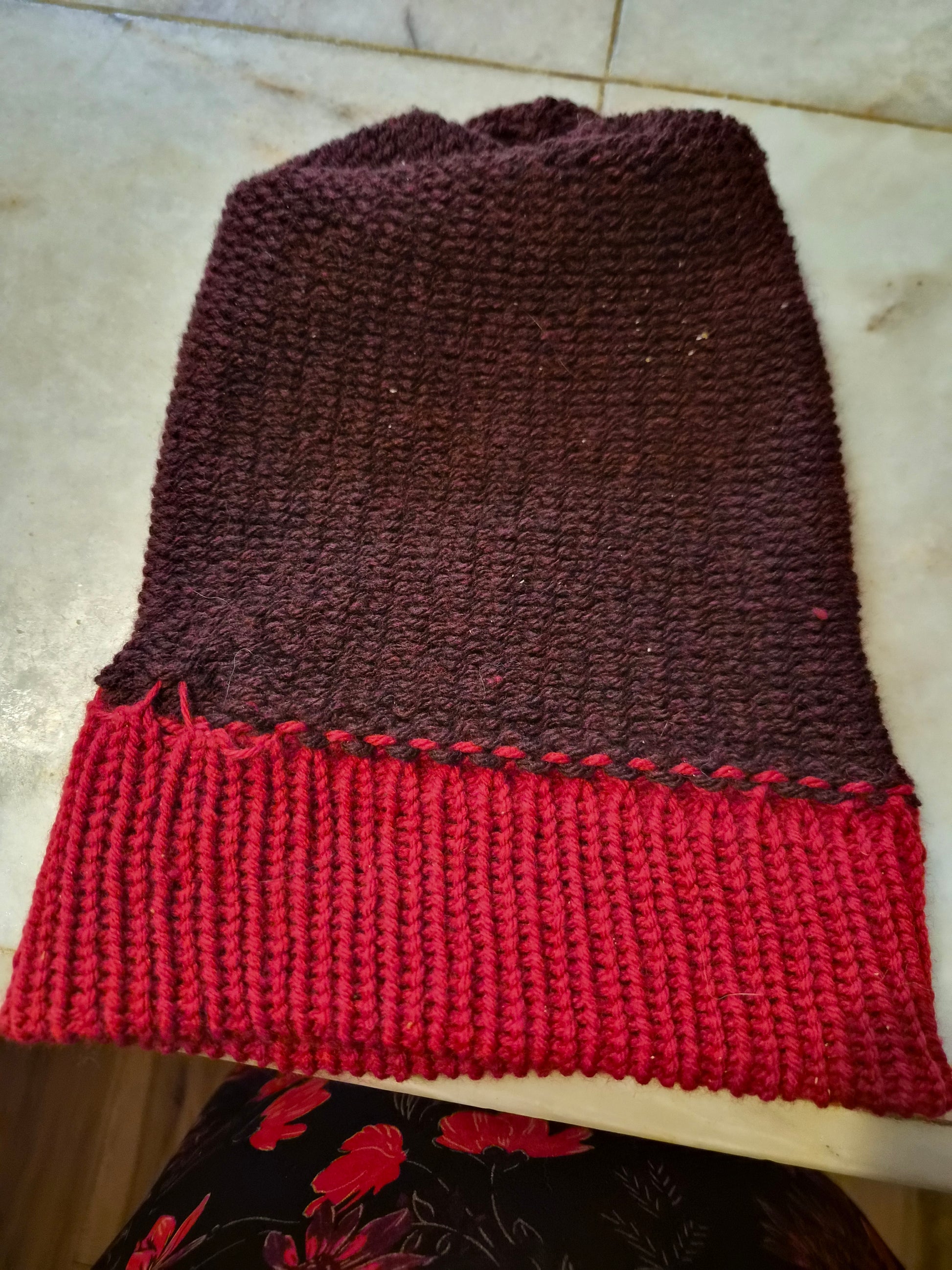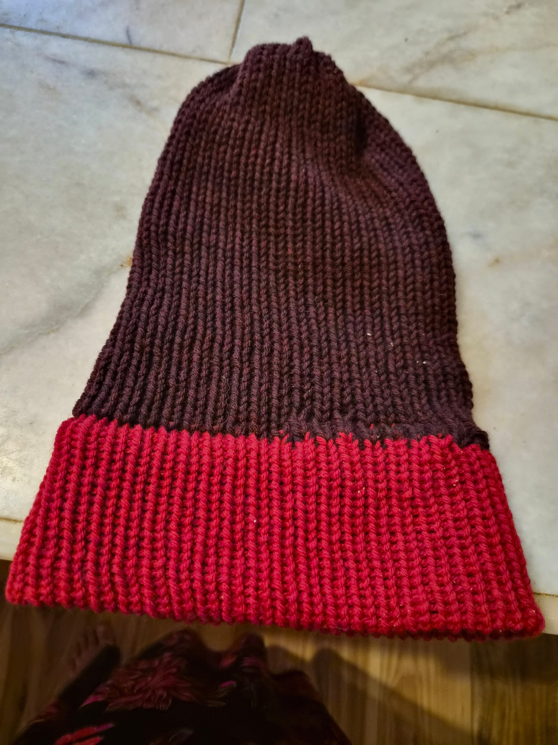 Deeply Discounted: Two-Tone Knit Beanie - Burgundy & Red (Sentro/Machine-Assisted)