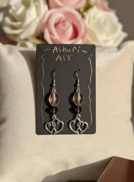 Delicate Intertwined Hearts Earrings showcase two beautifully linked hearts, symbolizing a special bond. Enhanced with a soft pink glass bead and a rich purple accent, these earrings bring a gentle hint of romance and charm. Their subtle elegance makes them perfect for both daily wear and memorable moments, adding a tender sparkle to any look.