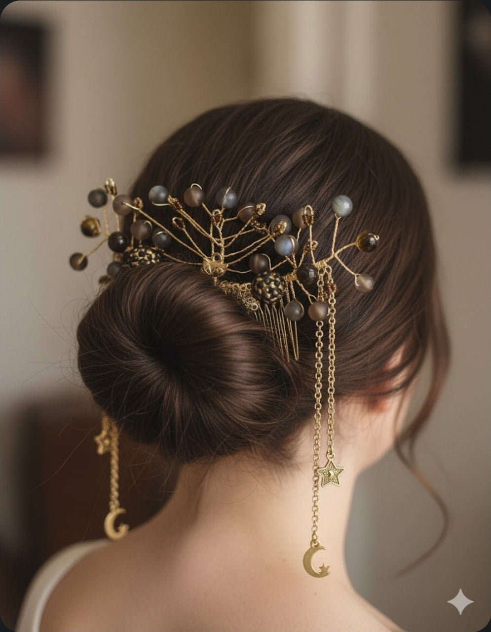* Hardware: Metal alloys and copper components (used for all non-chain metal elements, including charms and the hair comb structure).